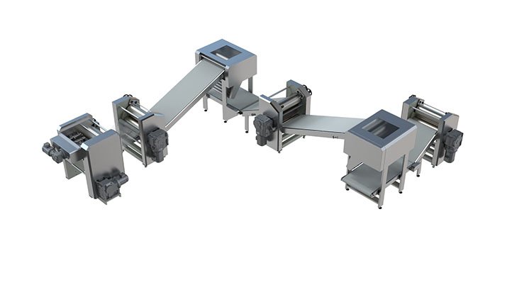 ◆ 壓輥采用高鉻合金鑄輥,表面光潔度高,面片厚度精度高。每對壓輥之間間隙采用伺服控制自動調(diào)節(jié)。