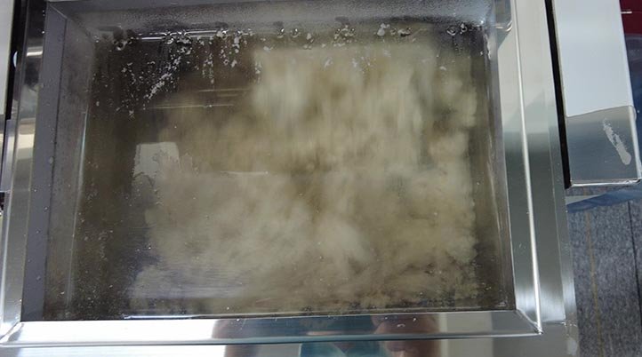 第二次加水后,小顆粒開始黏結(jié)變大,這個(gè)階段的攪拌時(shí)間為2分鐘。這樣就可避免給面團(tuán)帶來傷害,使面團(tuán)持續(xù)達(dá)到顆粒松散、粒度大小一致、色澤一致、韌性十足、手握成團(tuán)、輕搓成粒的最佳狀態(tài)。